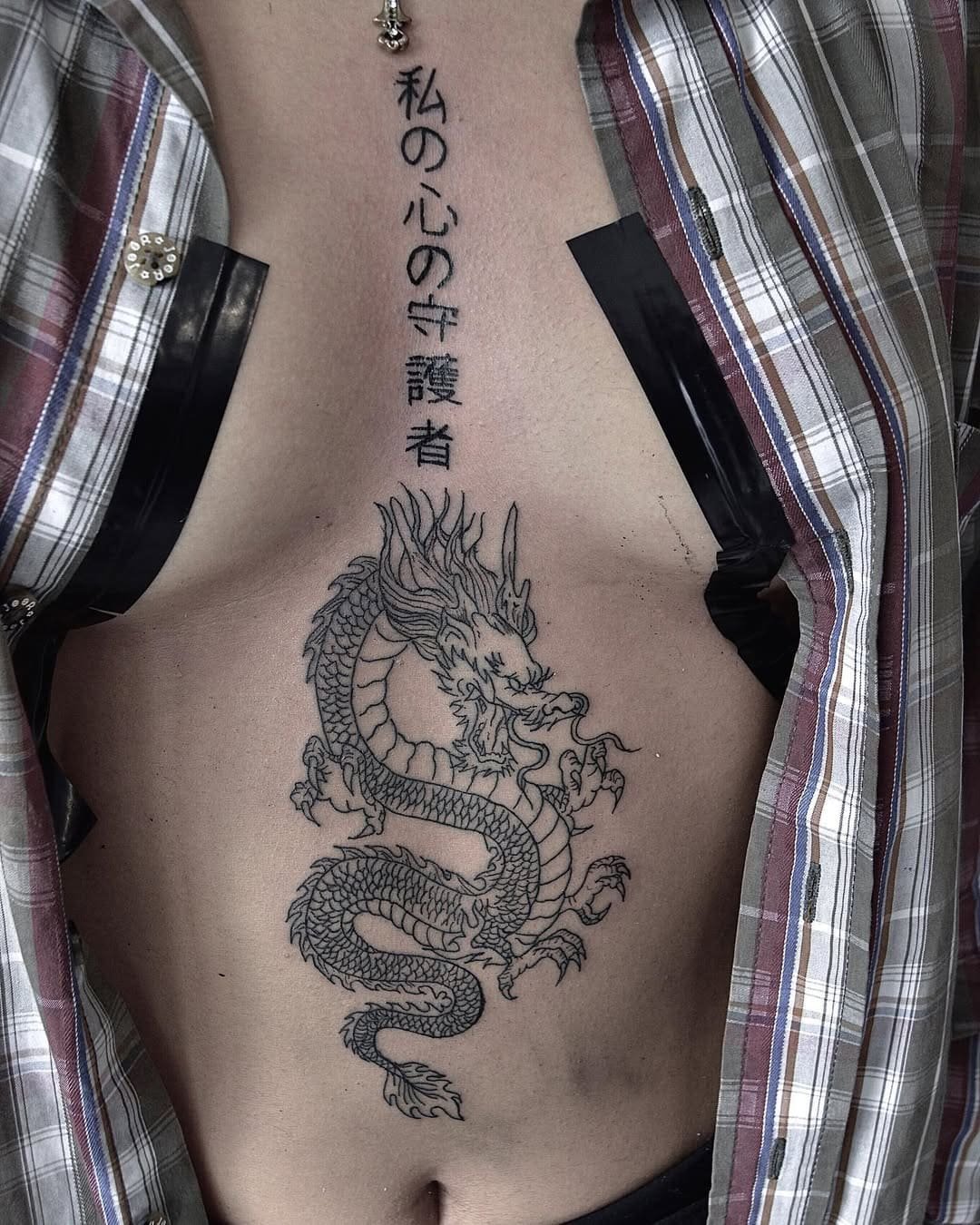 "Getting this chest piece was a bold move but totally worth it. The traditional style artwork is bold, clean, and exactly what I wanted for my first major tattoo."